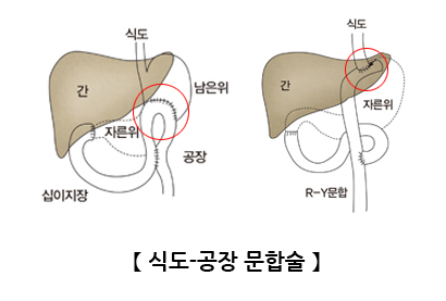 위를 절제한 후 음식물을 섭취하고 소화할 수 있도록 위와 공장 또는 식도와 공장을 문합시키는 방법들이 있습니다.