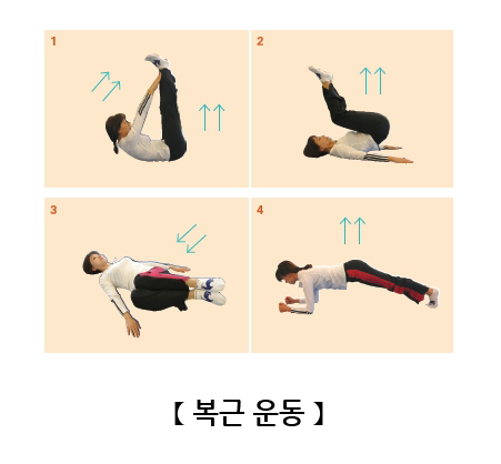 *각 운동별 8~10회씩 3~5세트를 하면 좋습니다.