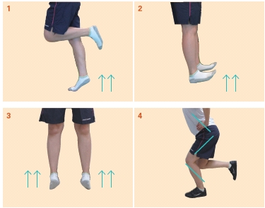 발뒤꿈치를 높이 올렸다 내리기를 반복합니다.