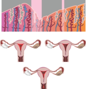 자궁내막은 여성호르몬 분비 변화에 따른 여성의 생식주기에 맞추어 발달과 퇴축이 반복됩니다. 자궁내막은 한 달을 주기로 두꺼워졌다가 얇아지는 과정을 거치면서 임신에 대한 준비를 합니다. 난소에서 난자가 배란된 후 10일 전후의 기간 동안 자궁내막이 가장 비후되어 수정란이 착상하기 좋은 상태가 됩니다. 수정란이 자궁내막에 착상하면 비후된 내막에서 영양 공급을 받으며 태아가 자라나고 태반이 만들어집니다.
