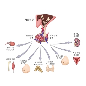 이중 시상하부가 부신 호르몬의 분비를 조절하는 중추적인 역할을 하게 됩니다. 뇌하수체는 시상하부에서 전달된 신호를 받아 부신의 호르몬 분비를 자극하는 부신피질자극호르몬을 분비하게 되는데, 이 호르몬이 작용하여 부신에서 각각의 호르몬을 분비하게 됩니다.