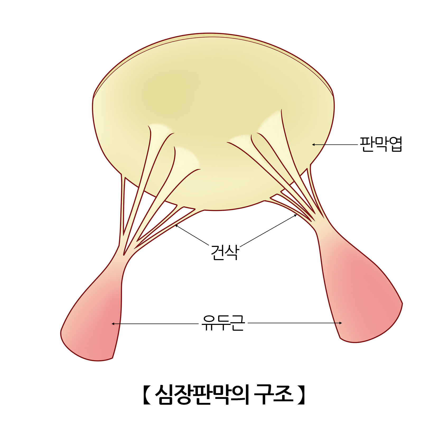 심장 내에 위치하여 혈액이 일정하게 흘러갈 수 있도록 도와주는 역할을 합니다. 심장의 판막은 삼첨판, 승모판, 폐동맥판, 대동맥판으로 구성되어 있습니다.