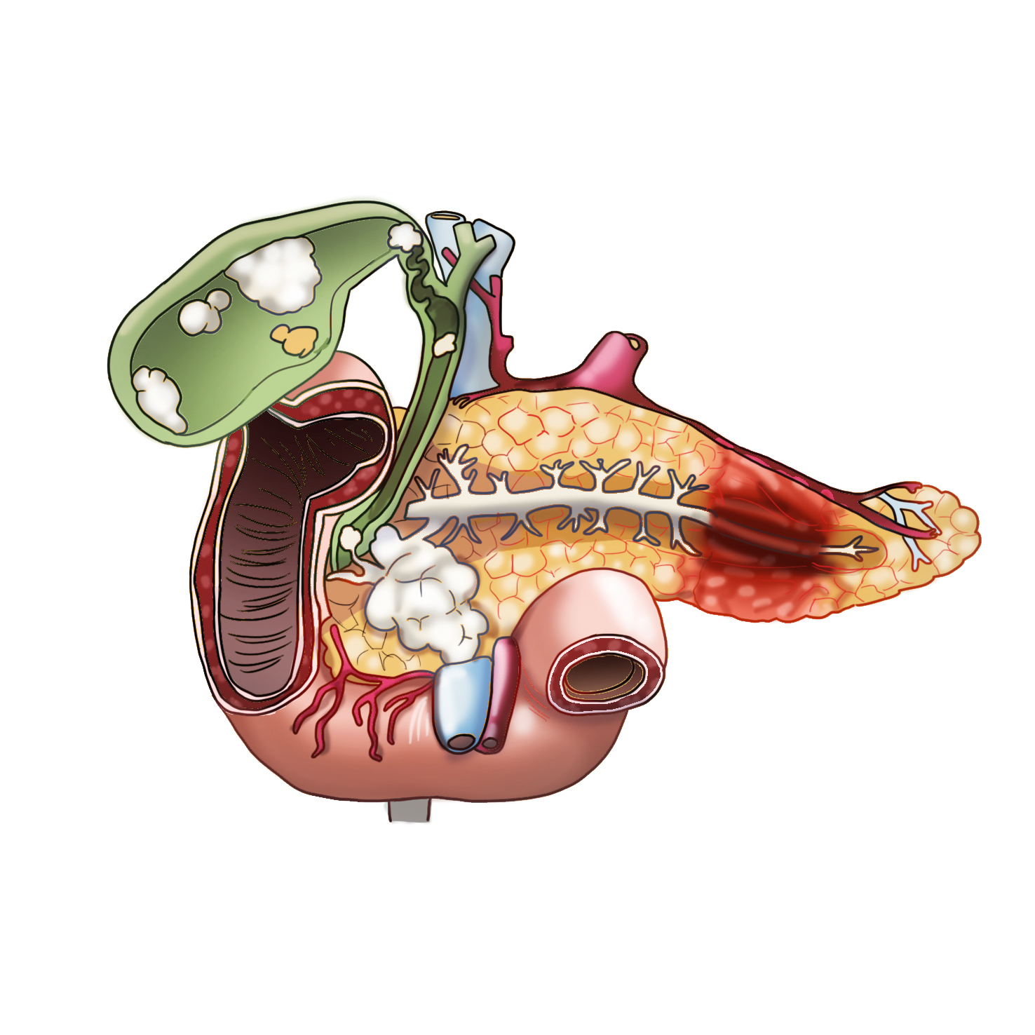 위장의 뒤쪽에 위치한 후복막 장기로 소화기관 중 하나입니다. 췌장은 소화효소를 분비해 음식물을 소화시키는 기능과 우리 몸의 혈당을 조절하는 인슐린과 글루카곤 호르몬을 분비하는 기능을 수행합니다.