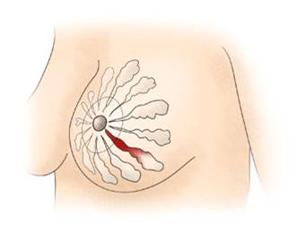 젖샘은 유방의 내부에서 유두를 중심으로 15~25개의 엽이 부채살 모양으로 퍼져 있으며, 엽은 지방조직과 결합조직으로 이루어져 있습니다.