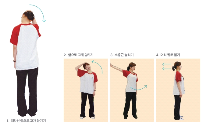 무거운 짐을 머리에 이는 행동, 머리를 바닥에 대고 물구나무를 서는 행동, 목에서 소리가 날 정도로 반복적으로 옆으로 회전시키는 행동 등은 목에 무리가 되므로 삼가야 합니다.