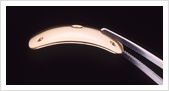 이런 경우 눈꺼풀에 금이나 플레티넘으로 된 추를 삽입하여 눈이 잘 감기도록 합니다. 안검은 얇고 굴곡이 있기 때문에 다른 금속보다 얇고 굴곡을 잘 표현하면서 무게가 있는 금을 사용합니다.