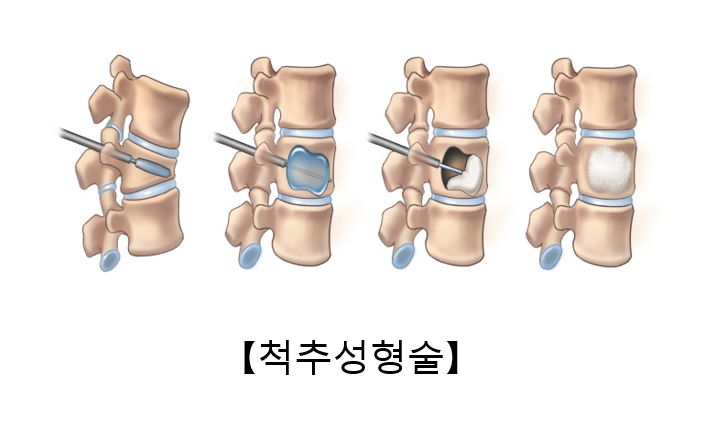 노인성 척추후만증이 있는 환자는 대부분 골다공증이 심하고 이미 근력이 약화된 상태여서 수술 치료의 대상이 되지 않습니다. 골다공증성 압박 골절에 의해 환자의 통증이 심해 거동하기 어렵다면, 골절된 척추뼈에 바늘을 넣어 골 시멘트를 주입하여 척추체를 보강하는 척추 성형술을 시도할 수 있습니다. 또는 풍선을 이용하여 함몰된 척추뼈를 복원하고 그 이후에 골 시멘트를 넣는 후만 성형술을 시도해 볼 수 있습니다.