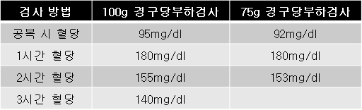 75g 경구당부하검사는 75g 포도당 섭취 후 2시간이 지났을때 혈액 중의 포도당 농도를 측정하는 방법입니다.- 검사결과