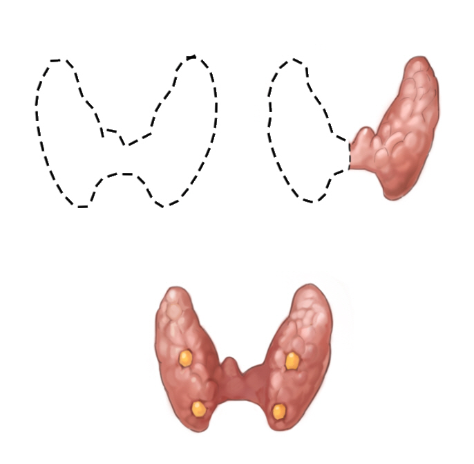 갑상선에 발생한 병변을 절제하는 갑상선절제술은 병변의 완전한 제거를 목적으로 합니다. 기본적으로 갑상선과 주변 림프절을 절제하는 수술이지만, 종양 세포 조직의 종류와 침범 정도에 따라 수술 방법은 달라질 수 있습니다. 갑상선을 침범한 병변에 따라 절제 범위는 달라지며, 갑상선 조직을 전부 제거하는 갑상선 전절제술과 종양이 침범한 엽만 제거하는 일엽절제술로 나뉩니다. 수술의 범위는 환자 병변의 진행 정도에 따라 결정됩니다.