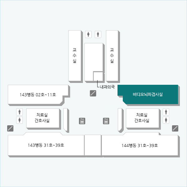 동관 1층 정문 엘리베이터 14층 비디오뇌파검사실
