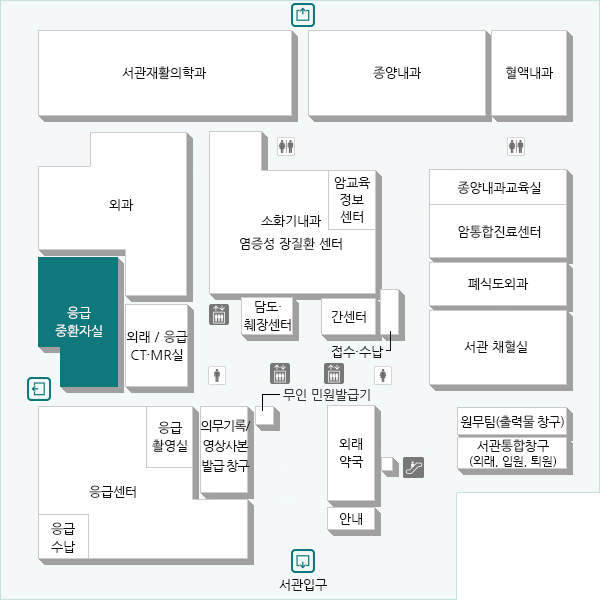 서관 1층 정문 좌측 방향 응급의료센터 앞