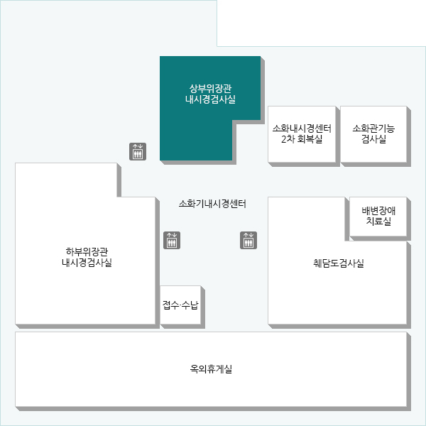 서관 1층 정문 엘리베이터 4층 상부위장관내시경검사실