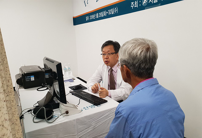 우리 병원 의료봉사팀은 5월 29일(화)~30일(수) 강원 횡성군 둔내면을 찾아 마을주민 130여 명에게 무료진료를 펼쳤다. 진료 시 예진 및 진찰을 통해 개인별 필요항목 검사를 진행하였고, 진료버스에서는 혈액검사, 심전도검사, 방사선검사, 소변검사 등 다양한 검사가 이루어졌으며 진료 후에는 모든 분에게 기념품도 제공하였다. 진료를 받은 어르신께서는 “좋은 진료 받게 해준 것도 고마운데 선물까지 주다니!”라며 고마움을 표하셨다.
