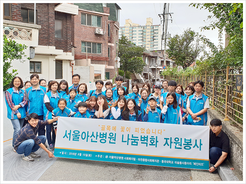지난 15일, 서울아산병원 직원과 가족 약 40여 명이 참여해 송파구 마천동 주민들에게 담벼락 벽화를 선물했습니다.
