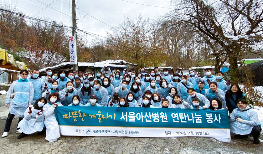 서울아산병원은 매년 겨울 한파로 난방에 취약한 소외된 이웃을 찾아 '따뜻한 겨울나기 연탄나눔 봉사'로 따뜻한 온정의 손길을 보내오고 있다.