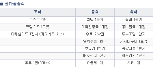 골다공증 환자와 골다공증으로 진행될 위험이  높은 환자에게 식사 중 칼슘 섭취량을 1일 1,000mg 이상으로 증가시키기 위한 식사 입니다