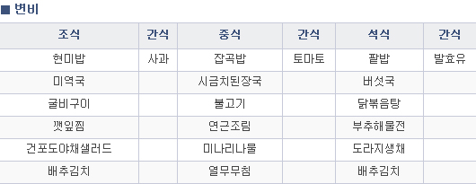 보리, 현미 등의 잡곡류, 고구마, 통밀빵, 모든 채소, 말린 나물류, 생과일, 미역, 김, 다시마, 건자두(푸룬), 발효유 등